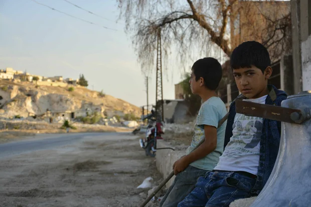 Among all these political and military complexities, meanwhile, 10-year-old boy Ahmed Kadoor sits with his friend amidst the destruction in al-Lataminah.