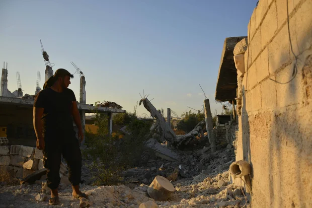 DE-MILITARISED ZONE, Syria – With the autumn sun setting behind him, Hassan Abu Ahmed inspects the crumpled heap that was once his relative's house.