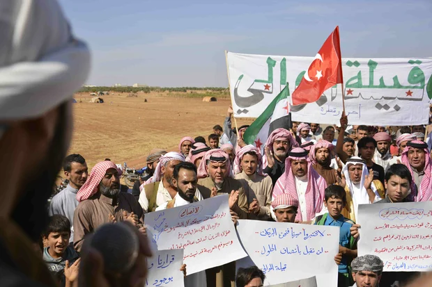 In Sarman, a village in the buffer zone southeast of Idlib city, dozens of Arab tribesmen gathered in front of a Turkish observation point, demanding Ankara seeks further concessions from the Syrian government and its Russian ally.