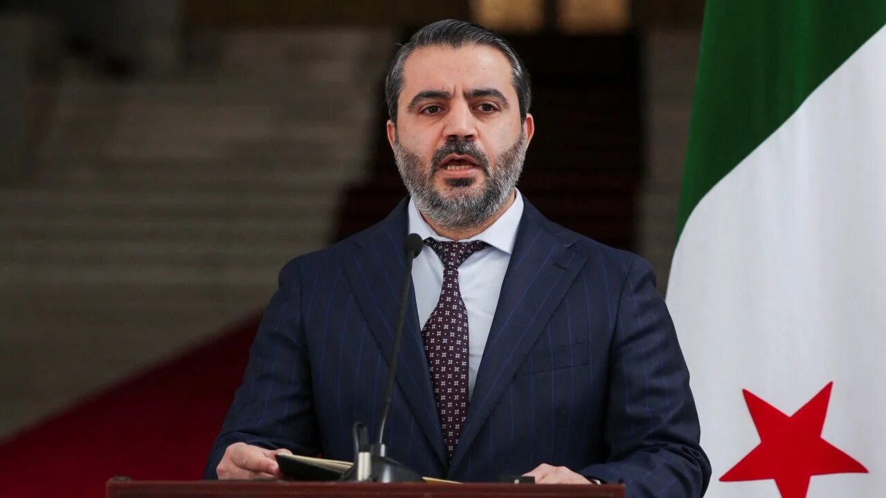 Syrian Foreign Minister Asaad Hassan al-Shibani speaks at a press conference with Ukrainian Foreign Minister Andrii Sybiha (not pictured) in Damascus, Syria, on 30 December 2024 (Khalil Ashawi/Reuters)