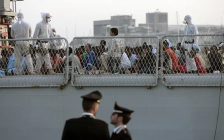 "The Mediterranean has become a graveyard, and not just the Mediterranean," he said, adding that there were also "many graveyards near walls, walls stained with the blood of innocents".
