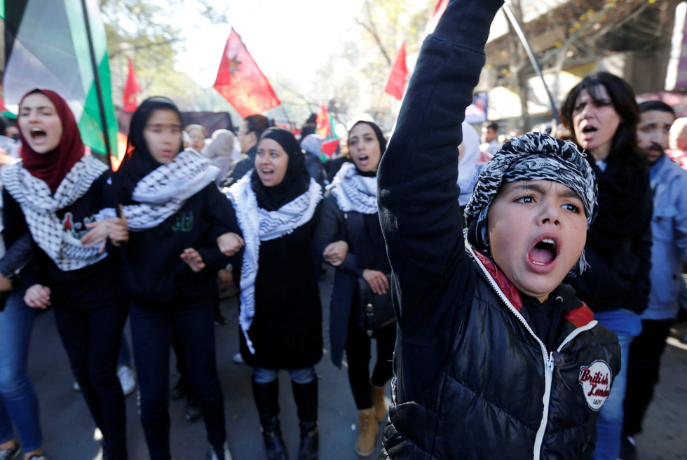Protesters chant slogans against US decision on Friday in Amman (Reuters)