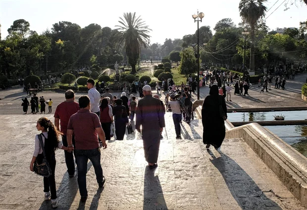 The parks in downtown Aleppo full of families during summer evenings (MEE/Katharine Cooper)