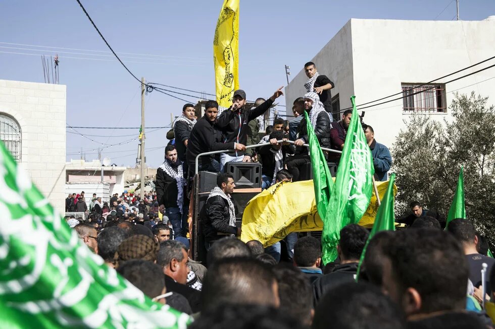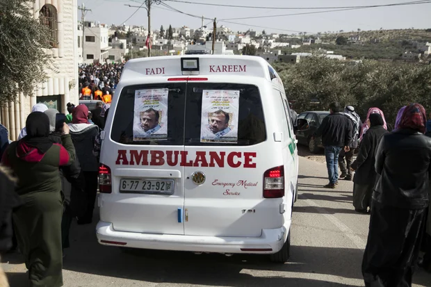 On leaving the morgue, the funeral procession marched through the streets of Ramallah waving flags of Palestine and the ruling Fatah party, before making their way to Al-Mughayyir where Nasan would be laid to rest.