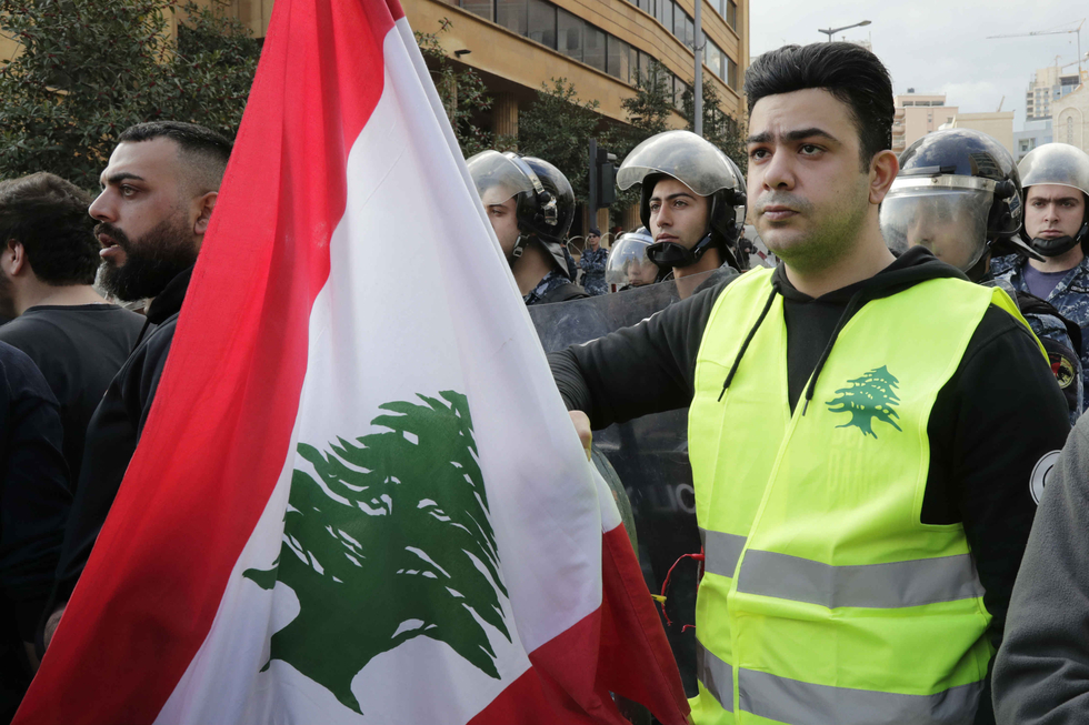 The protesters, many of whom were wearing yellow vests in a nod to the French anti-government "gilets jaunes" demonstrations, congregated in the Lebanese capital's central Downtown district.