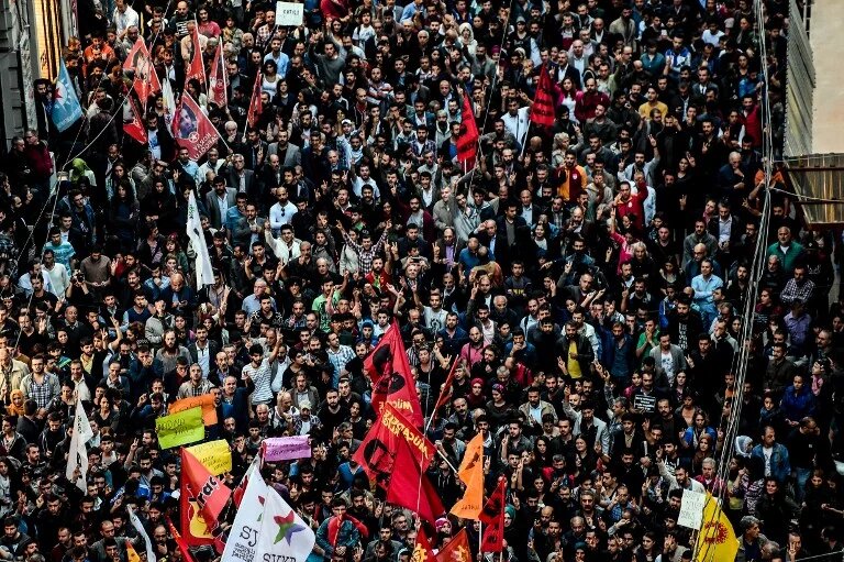 Demonstrators filled Sihhiye Square in the centre of the Turkish capital, close to the site of the blasts outside the train station.