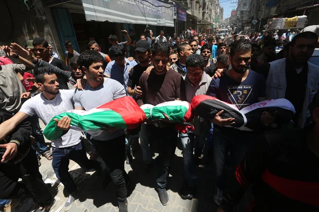 She was taken to see them but only after the bodies had been wrapped in Palestinian flags and prepared for burial, their names written on the flags in red ink.