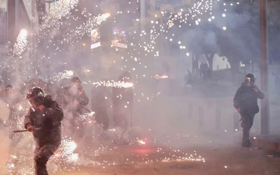 Derbas said that one female protester received a shock from a stun gun to her face, and several others suffered minor wounds across their bodies before security forces intervened to separate the two groups and fired tear gas.