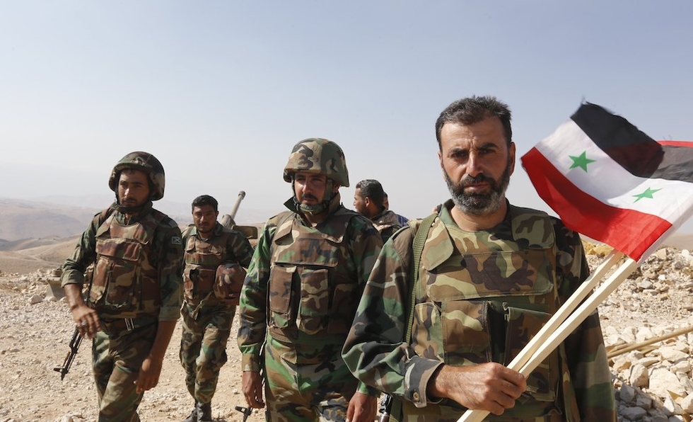 Syrian government forces in a mountainous area around the town of Flita near the border with Lebanon (AFP)