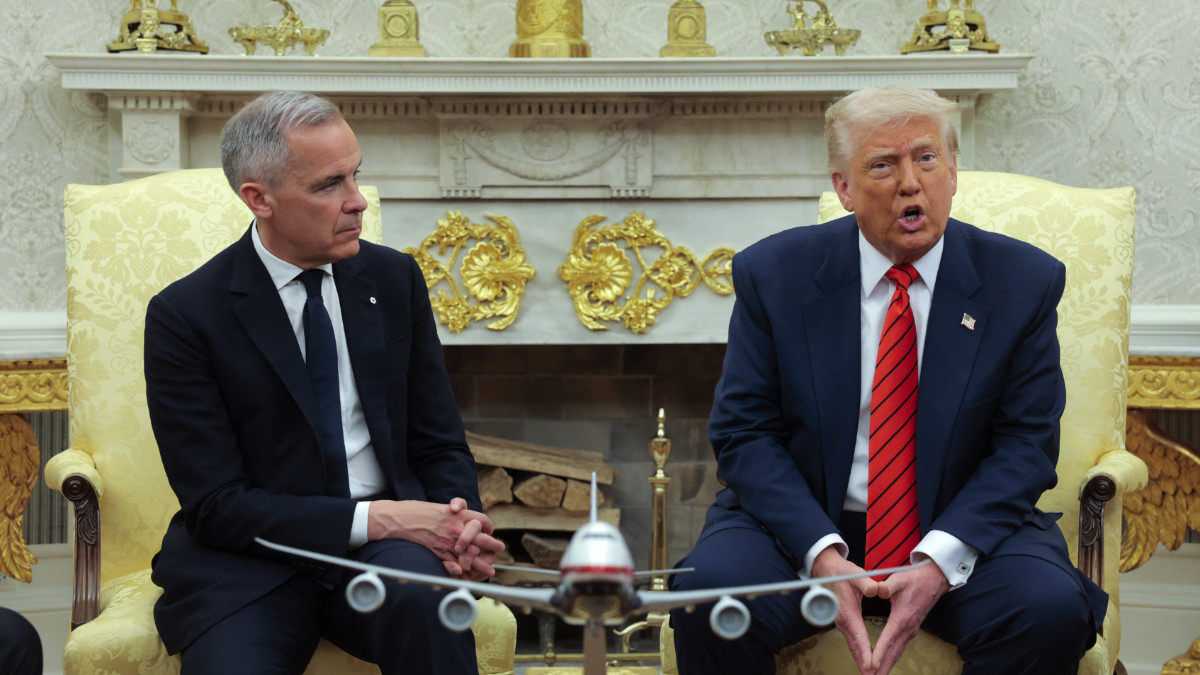 US President Donald Trump (R) meets with Canadian Prime Minister Mark Carney in the Oval Office at the White House in Washington, DC, on 6 May 2025 (Anna Moneymaker/Getty Images/AFP)