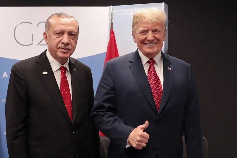 Turkey's President Recep Tayyip Erdogan, left, with US President Donald Trump at G20 summit in Buenos Aires, Argentina, on 1 December (AFP)