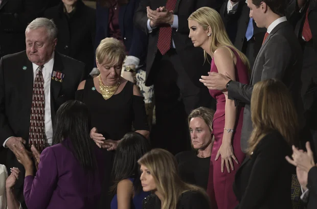 In his first nationally televised speech to Congress since taking office on 20 January, Trump acknowledged in the audience the widow of US Navy commando William Owens, known as Ryan, who was killed in the operation. Tears streamed down her face as she rose and politicians gave her a standing ovation.