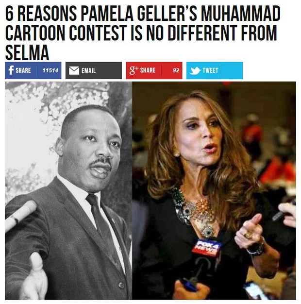 “Geller’s provocative Muhammad Cartoon Contest was no different than Dr. Martin Luther King’s landmark march from Selma to Montgomery...”