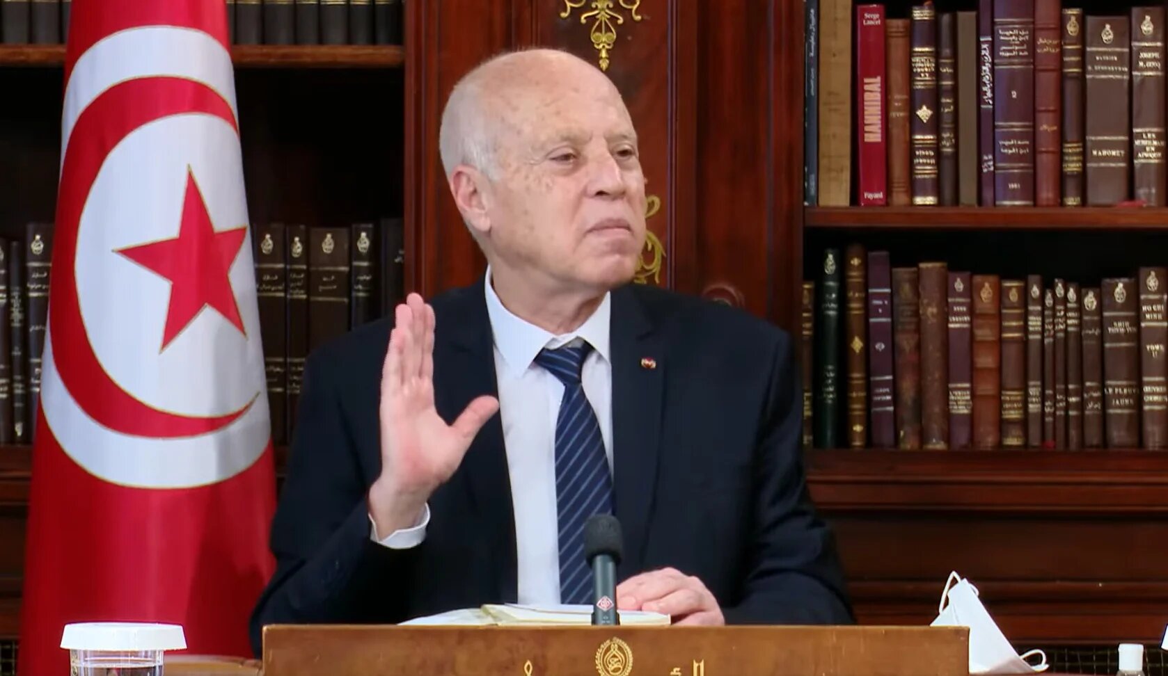 'I will not engage in dialogue with thieves,' Tunisian president Kais Saied said in a filmed statement published online on 14 September, 2021 (Screengrab)