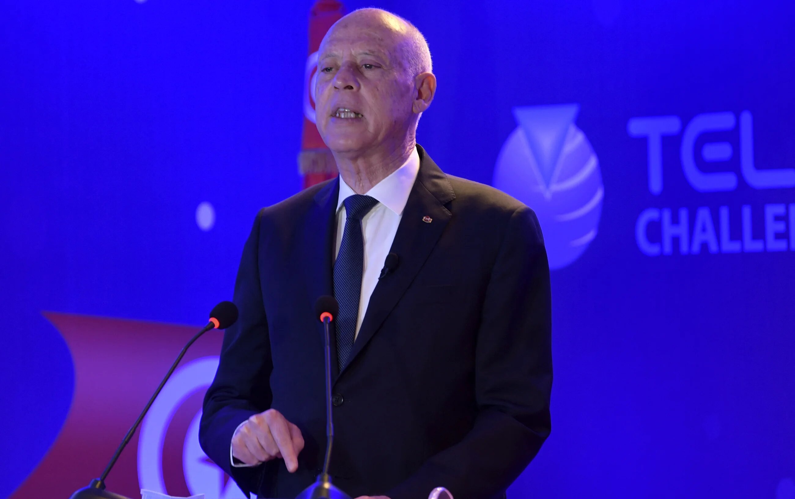 Tunisian President Kais Saied delivers a speech in the capital Tunis on 22 March 2021 (AFP)