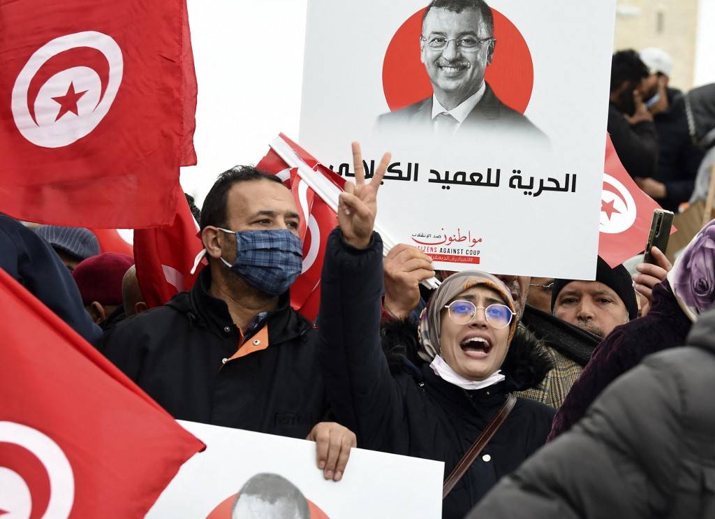 The protest was organised by the Citizens Against Coup movement, launched in the aftermath of Saied’s power grab in July last year, widely labelled a “constitutional coup” by the Tunisian opposition.