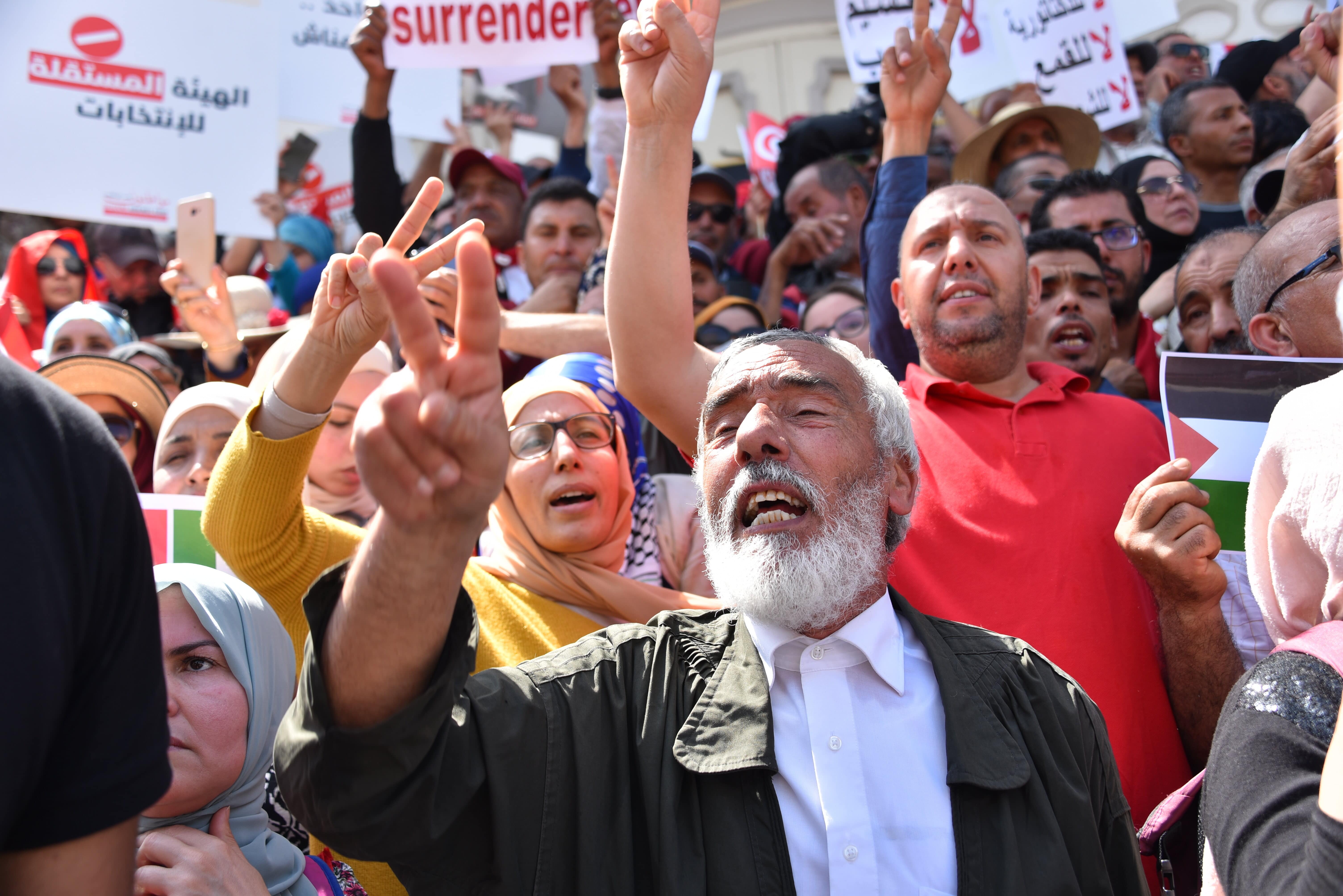 "Our peaceful resistance will continue in the street until we restore our freedom and democracy," said one of the protesters, Tijani Tizaoui, who said he had been imprisoned before the 2011 revolution for protesting then.