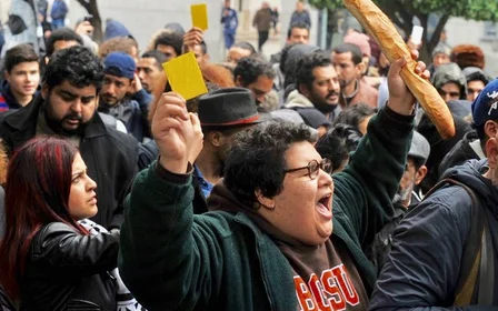 Tunisians shout slogans during a demonstration against the government and price hikes (AFP)