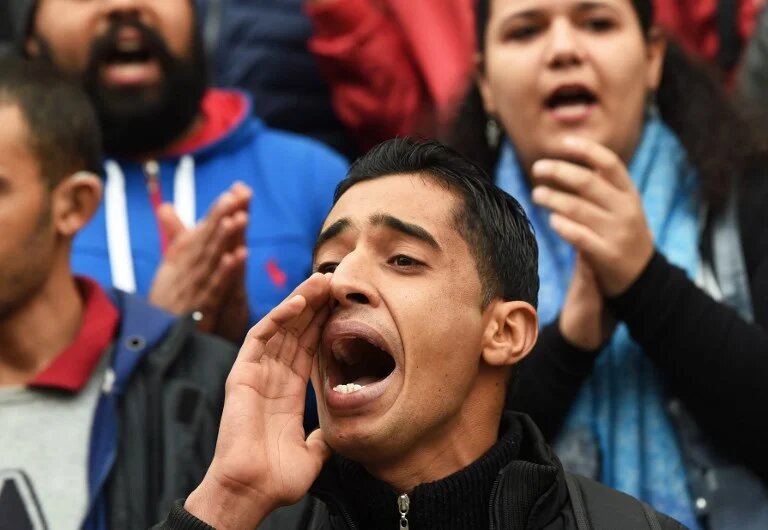 Tunisian protesters outside government offices in Tunis, January 2018 (AFP)