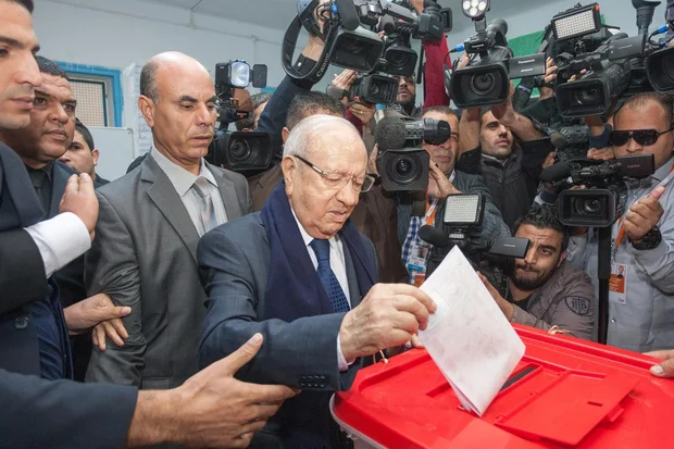 Beiji Caid Essebsi casts his ballot in Ariana on Sunday (AA)