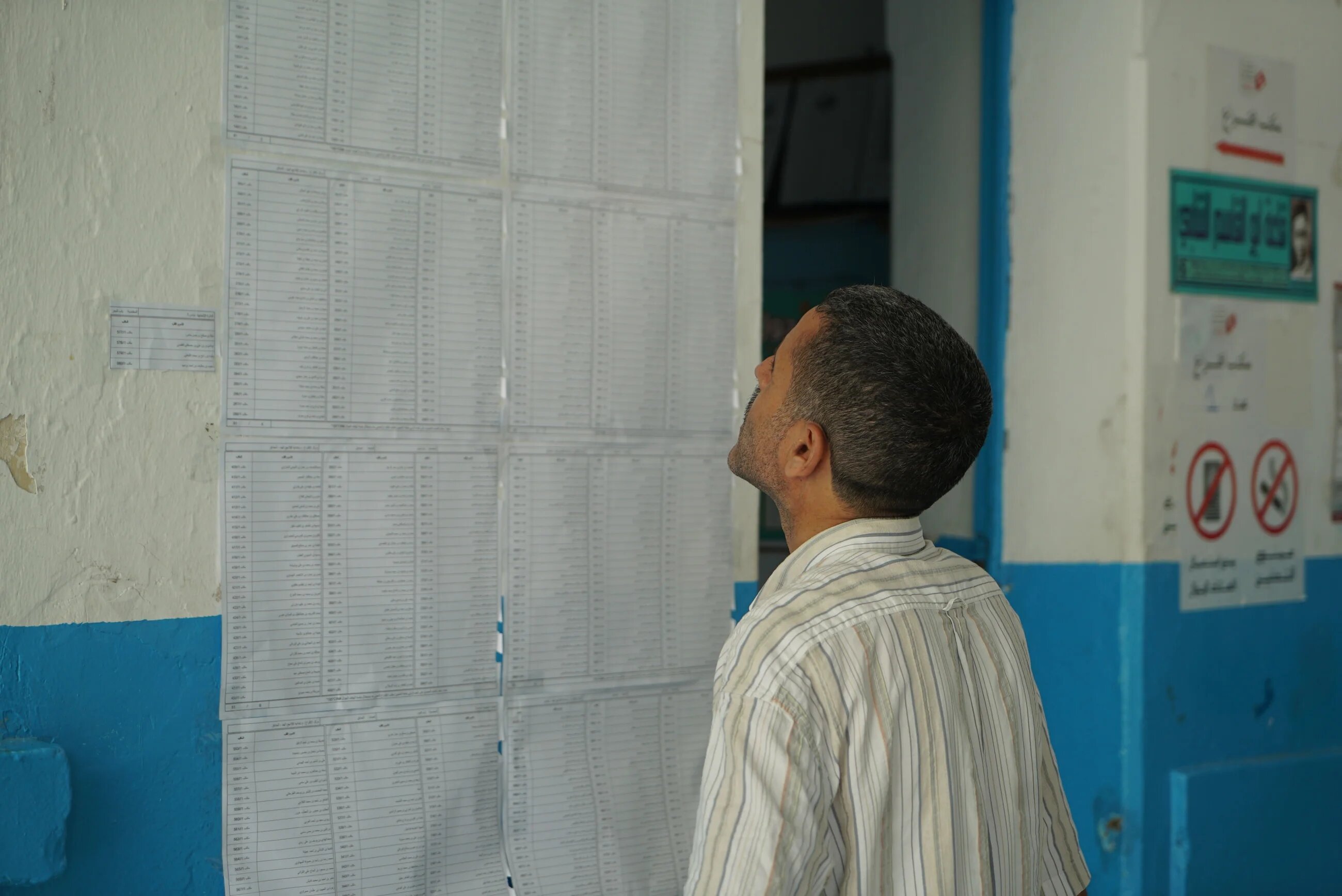 A man in a Tunis polling station inspects a list of candidates (MEE/Faisal Edroos)