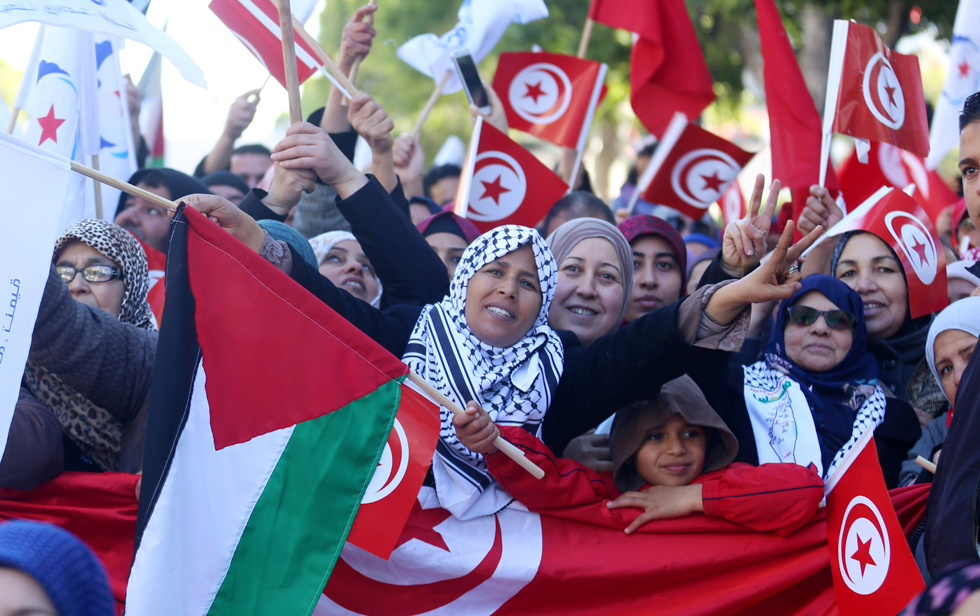 Security was tight as protesters poured through checkpoints into the capital's Habib Bourguiba Avenue, which was the epicentre of the 2011 protests.