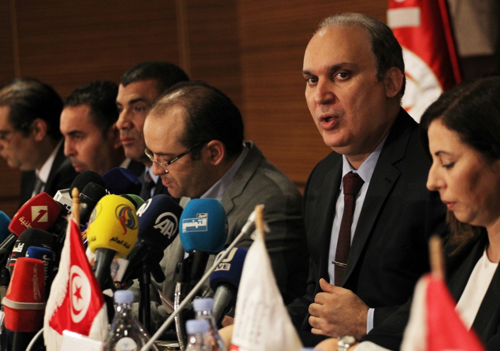 Nabil Baffoun, second from right, the head of Tunisia's electoral commission, announced on 31 August the final list of 26 presidential candidates to stand in the 15 September polls (AFP)