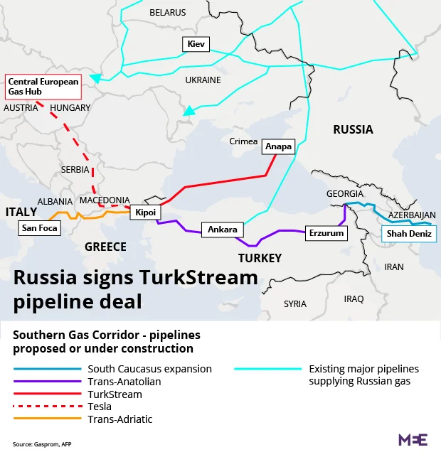 The plan to build TurkStream was dramatically announced by Putin in December 2014 in Ankara, as a replacement for the South Stream pipeline that was to have been built in cooperation with EU countries.