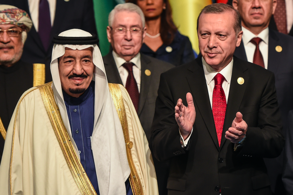 Turkish President Recep Tayyip Erdogan greeted each of the 55 guests upon arrival with a handshake, but a special peck on the cheek was reserved for a select few. The Saudis got one, the Iranians did not.