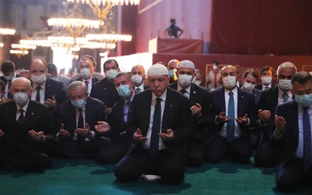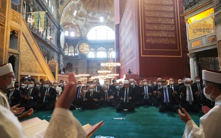 During the opening prayers at the newly reconverted mosque, Ali Erbas, head of the Directorate of Islamic Affairs, recited a curse attributed to Mehmed II, which targeted anyone who would try to change the Hagia Sophia’s form from a masjid.