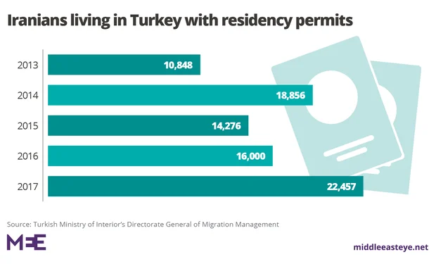 An Iranian who has been in Turkey for eight years and works in the Association for Solidarity with Asylum Seekers and Migrants (ASAM), one of the biggest organisations helping immigrants in Turkey, told MEE that in the past six months, the number of Iranian migrants who have come to ASAM for guidance has increased by 25 percent. He spoke on condition of anonymity because he is not authorised to give interviews.