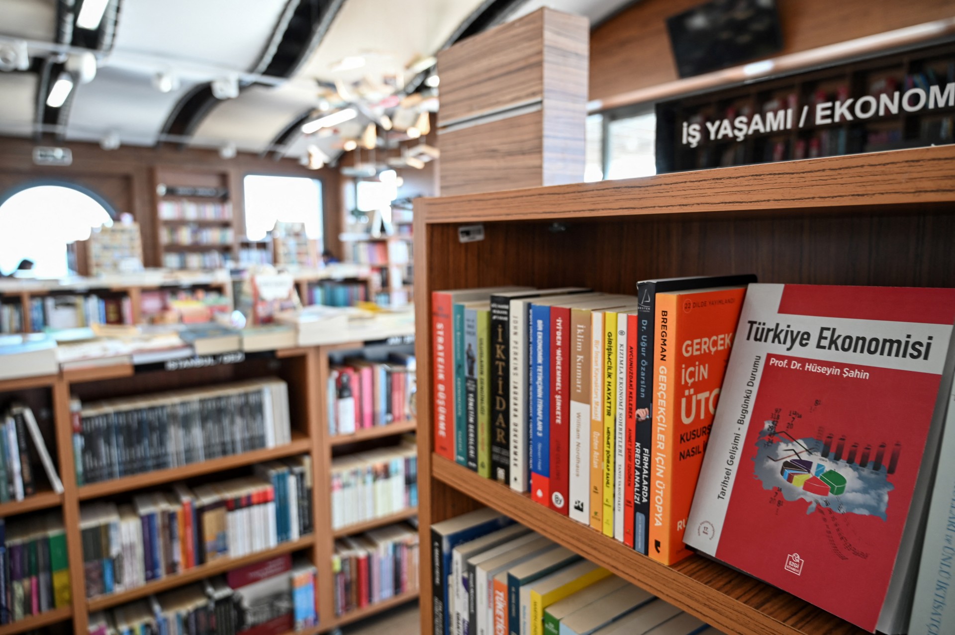 Books are displayed inside a bookstore on Istiklal avenue in Istanbul (AFP)