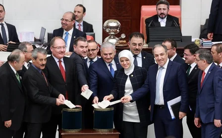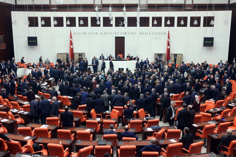 Lawmakers cast their votes during the second round of a debate on the proposed changes to the Turkish constitution, at the Turkish parliament in Ankara on 21 January, 2017 (AFP)