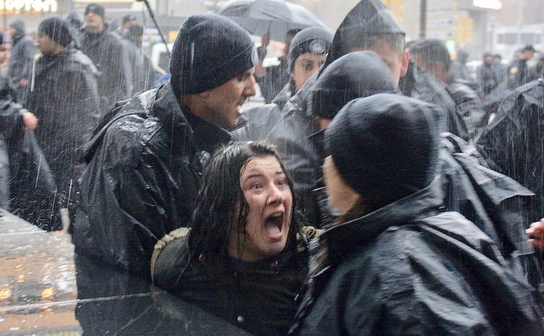 "We are getting stronger in solidarity," read one banner as riot police moved in and fired tear gas after the group ignored calls to disperse, AFP photographers at the scene said.