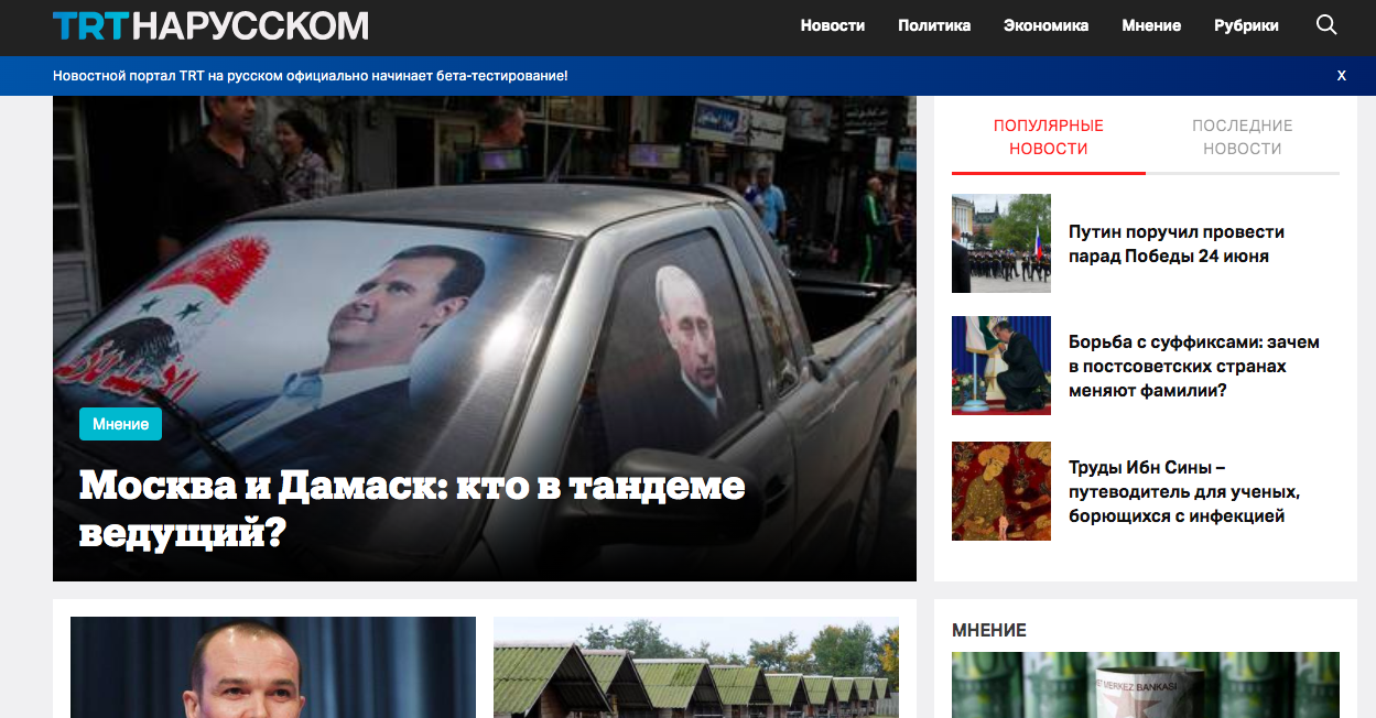 Turkish public broadcaster TRT announced earlier this week that it has transformed its Russian-language news site, which occasionally translated Turkish content, into an ambitious platform that would host TV programmes and provide exclusive reporting and commentary on Russia and the region around it.