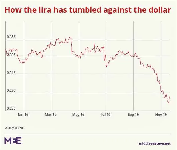 Observers say a combination of international factors - such as the US election and potential policy decisions that president-elect Donald Trump might make - and domestic factors such as the Turkish government’s post-coup clampdown and moves to introduce an executive presidency system of governance are behind the lira’s travails.