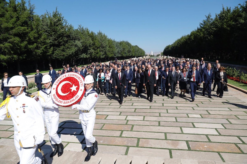 Attending the week-long conference - dubbed "Enterprising and Humanitarian Foreign Policy in the Presidential System of Government" - they listened to briefings by many of Turkey's ministers and also by the chairmen of some trade organisations, in a big hall surrounded by dozens of security guards.