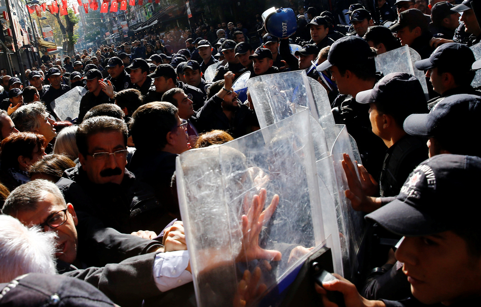 The arrests sparked large protests in the capital and beyond. One video, posted on Twitter, apparently showed police firing into the air to disperse the crowds in Diyarbakir. The video has not been verified.