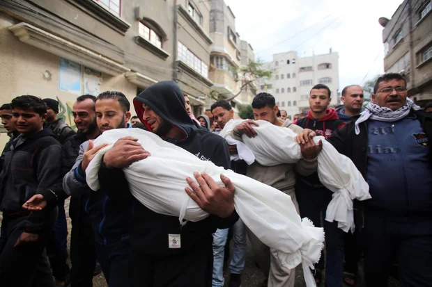 Palestinians attend the funeral of two young brothers from al-Hubail family, who died after fire broke out in their house in Gaza on 04 January, 2015 (AFP)