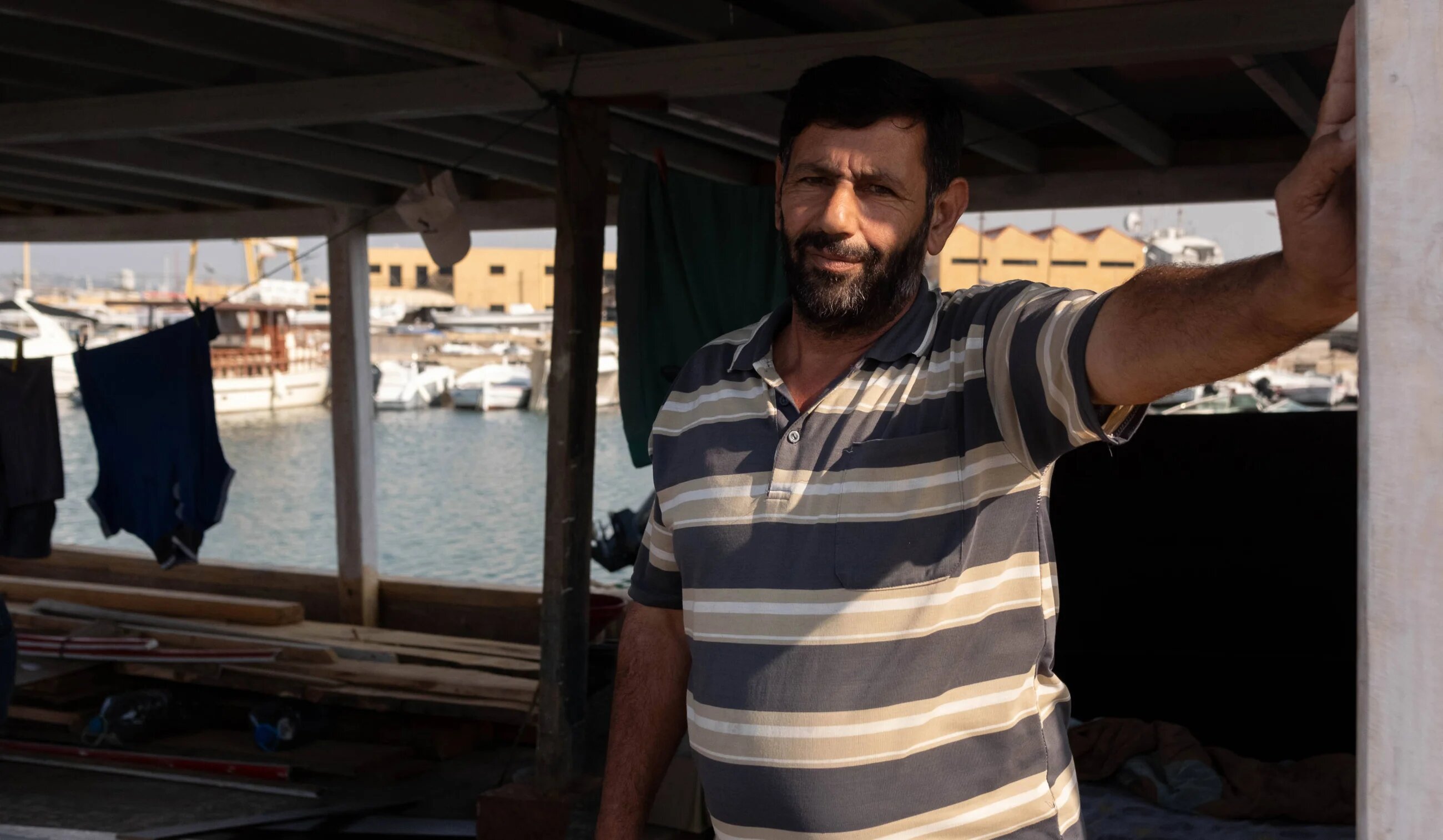 At the port, Adel el-Abedi, a fisherman of Palestinian origin, has rearranged his boat so that he can live inside it during the war, in the hope that it will protect him from the strikes.