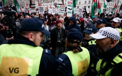 During the January protest, police banned protesters from gathering outside the BBC's Broadcasting House because of its close proximity to a synagogue.