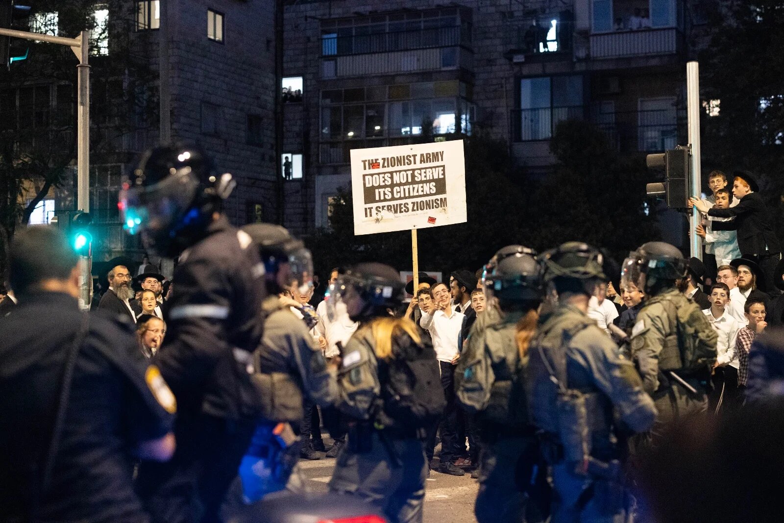 Ultra-Orthodox Jews clashed with Israeli police in Jerusalem on Sunday evening as thousands took to the streets in opposition to plans to conscript members of the community into the army.