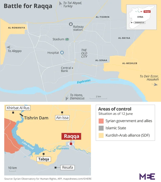 Tens of thousands of civilians have fled Raqqa and its surroundings since the US-backed Syrian SDF began its operation to capture the IS stronghold last year.