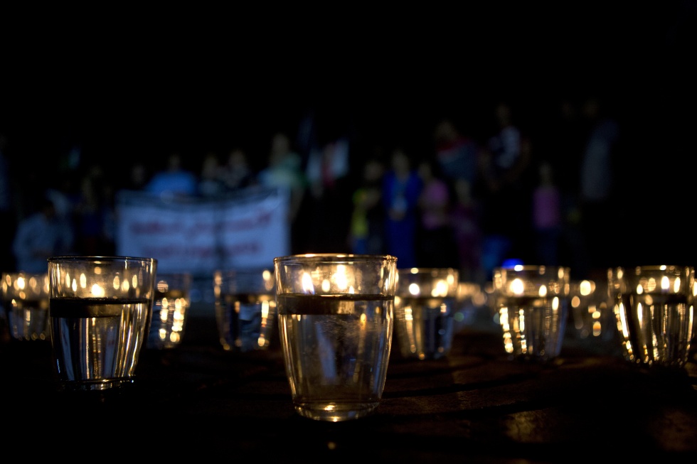 Palestinians light candles during a gathering in solidarity with prisoners on hunger strike June 5, 2014 (AFP)