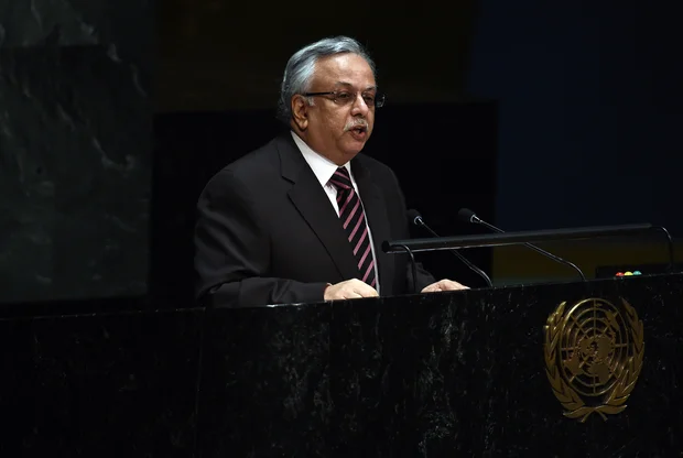 Saudi Arabia's permanent representative to the United Nations Abdallah Al-Mouallimi speaks at the UN headquarters in New York (AFP)