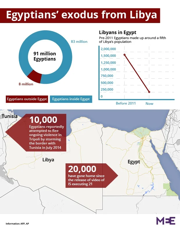 The attack has sparked an exodus of Egyptian migrant workers from Libya, with reports indicating that more than 20,000 have returned to Egypt since the video first appeared last Monday. Egypt's ambassador in Libya, Mohamed Abu Bakr, has said that his country is cooperating with local authorities in Libya to coordinate the evacuation of Egyptian nationals to Egypt.