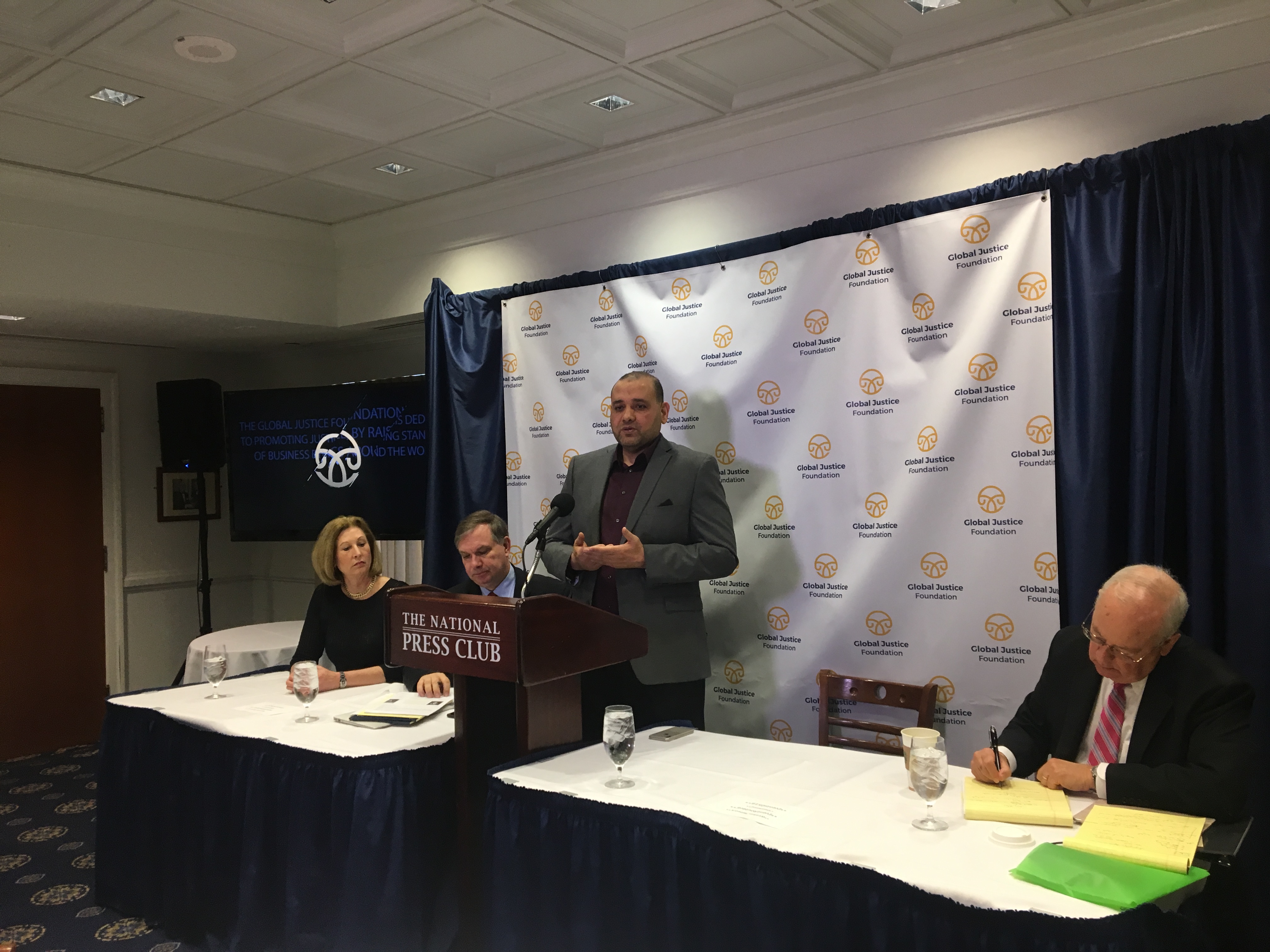 During a news conference in Washington on Thursday, the Global Justice Foundation's founder, Omar Ayesh, said the group plans to focus first on the Middle East and later expand its efforts elsewhere.