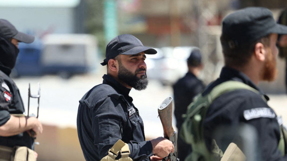 Syria's security forces standing guard in a street in the mostly Druze and Christian Jaramana suburb of Damascus on 29 April 2025 (Syrian Interior Ministry Facebook page/AFP)