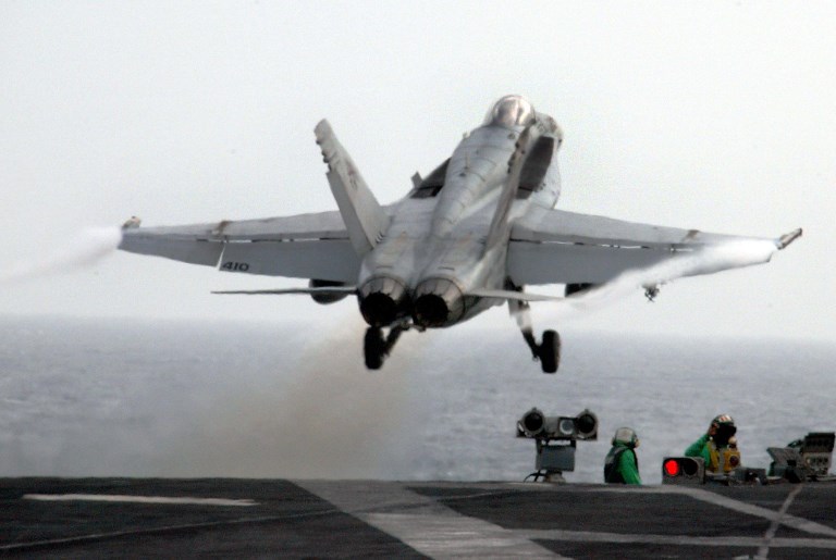 The F/A 18E fighter "experienced an engine malfunction and attempted to divert to Sheikh Isa Air Base, Bahrain," said Commander William Urban of the US Navy's Fifth Fleet, which is based in Bahrain. The plane had taken took off from the USS Nimitz, an aircraft carrier now in the Persian Gulf, the Associated Press reported. Isa Air Base is central to US operations against the Islamic State (IS) group in the region.