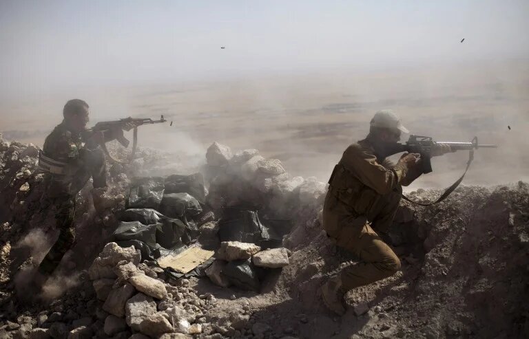 In Kirkuk, Kurdish forces backed by coalition airstrikes launched attacks to retake territory near the town of Kharbaroot, located 35 kilometers west of the city of Kirkuk.